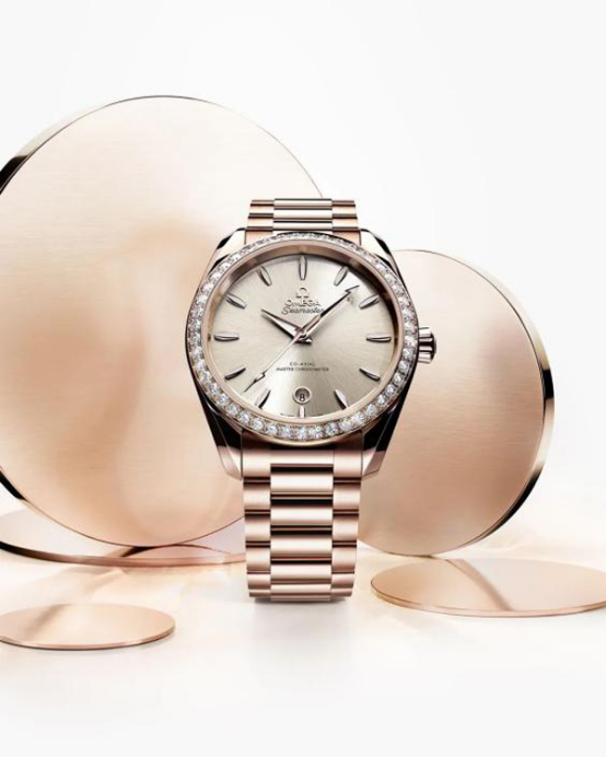當然,對于想要在基礎款式之上展露更多個人特色的女生來說,足夠特別才足夠令人喜歡。Aqua Terra Shades腕表有一款38毫米的全金腕表,采用歐米茄獨家研發的Sedna 18K金打造而成,這一獨特的紅色18K金色澤雅致,且不易褪色。表圈鑲飾46顆閃耀美鉆,共1.77克拉。砂巖色表盤經CVD技術打造,呈現出太陽射線的打磨效果。