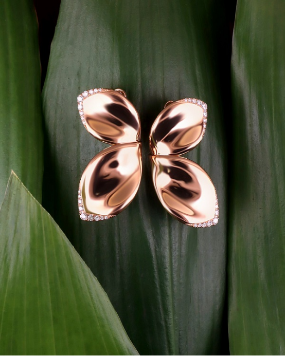 Eugenia Bruni:我個人一直對耳環(huán)十分著迷,也熱衷于研究耳環(huán),因為耳環(huán)可以點亮整體造型風(fēng)格。在我看來,如果戒指可以比作“國王”,那么耳環(huán)就是毫無疑問的“女王”。“Giardini Segreti”系列中耳環(huán)的美感在于就是它的靈動,通過不同的佩戴方式展現(xiàn)不一樣的效果。當(dāng)佩戴兩枚葉片時,則呈現(xiàn)出蝴蝶的形象,當(dāng)佩戴四枚葉片時,就呈現(xiàn)出花朵的形態(tài)。匹配佩戴時出席的場合、穿著的禮服,襯托出女性獨(dú)一無二的別樣韻致。