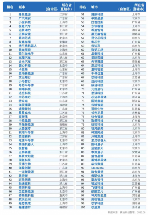表1 賽迪科創獨角獸百強(2023)